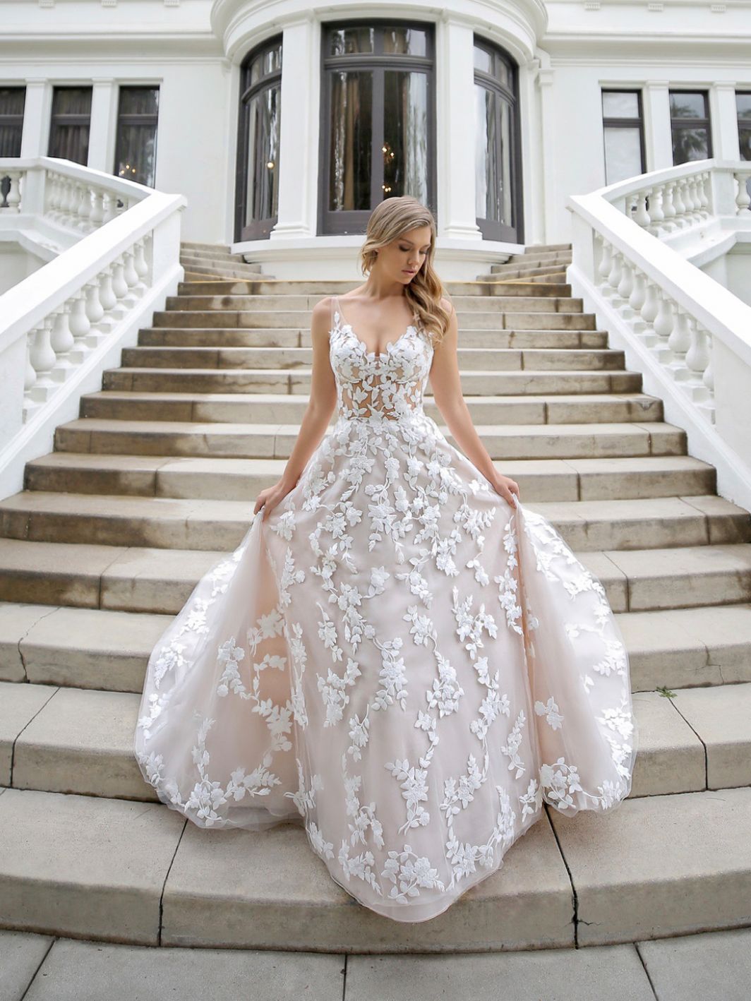 Floral lace a-line dress with appliques by Enzoani Blue.